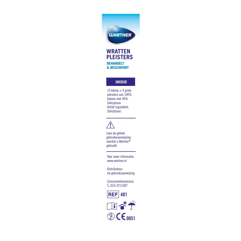 Wartner Wrattenpleisters Medisch hulpmiddel Wartner Wrattenpleisters maken het gemakkelijk om thuis gewone wratten (verruca vulgaris) en voetwratten (verruca plantaris) te verwijderen. Wartner Wrattenpleisters zijn effectief en gemakkelijke zonder geknoei en altijd optimaal huid contact. Verwijdert de gewone- en voetwrat Camoufleert Beschermt en voorkomt verspreidingDe vloeistof komt precies daar waar het nodig is
